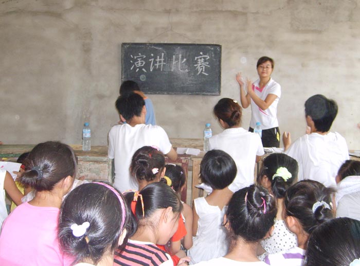 在20天的支教过程中,队员们每天早晨7:30、下午3:00就准时来到上课地点耐心细致地给农村的贫困孩子进行义务辅导。除正常的上课以外,队员们还利用自己的专业特长进行环保宣传、对孩子们进行安全教育、开展演讲比赛等课外活动。20天中,虽然每天都经受着高温酷暑,虽然上课和队员们自己生活的条件都比较艰苦,但队员们没有一个人因为苦而退出,相反每一位队员通过支教生活更多地感受到自己将来作为一名人民教师的责任感和使命感,更多地感受到自己应该学习更多的知识去传授给贫困山区的孩子。