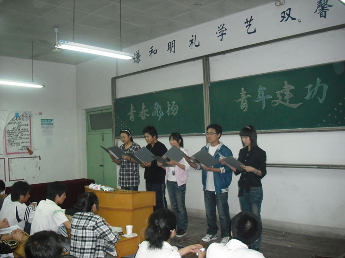 2010年5月16日,英国上市公司官网36508级化学一班与化学四班在生化楼2013教室举办了以“青春飞扬,青年建功”为主题的双学活动。
